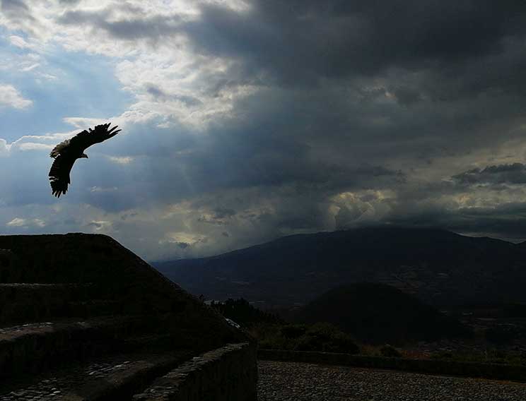 Desde El Lechero caminamos hasta el Parque El Cóndor, una fundación que rescata, protege y rehabilita aves, incluyendo dos cóndores andinos. En la foto, una águila calva se alza en vuelo.